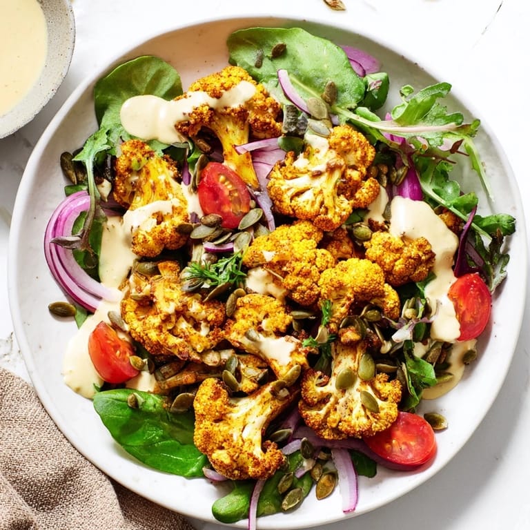 This salad is actually a canvas, which is something I discovered by accident when I made it three days in a row using whatever vegetables needed eating. Crispy chickpeas work beautifully if you want extra protein, croutons if you want carbs, grilled halloumi if you want to venture into non-vegan territory. Some people add a pinch of sumac or a scatter of pomegranate seeds, others layer in roasted beets. The base—cauliflower, greens, tahini—is non-negotiable, but everything else can shift based on the season or what's already on your counter.