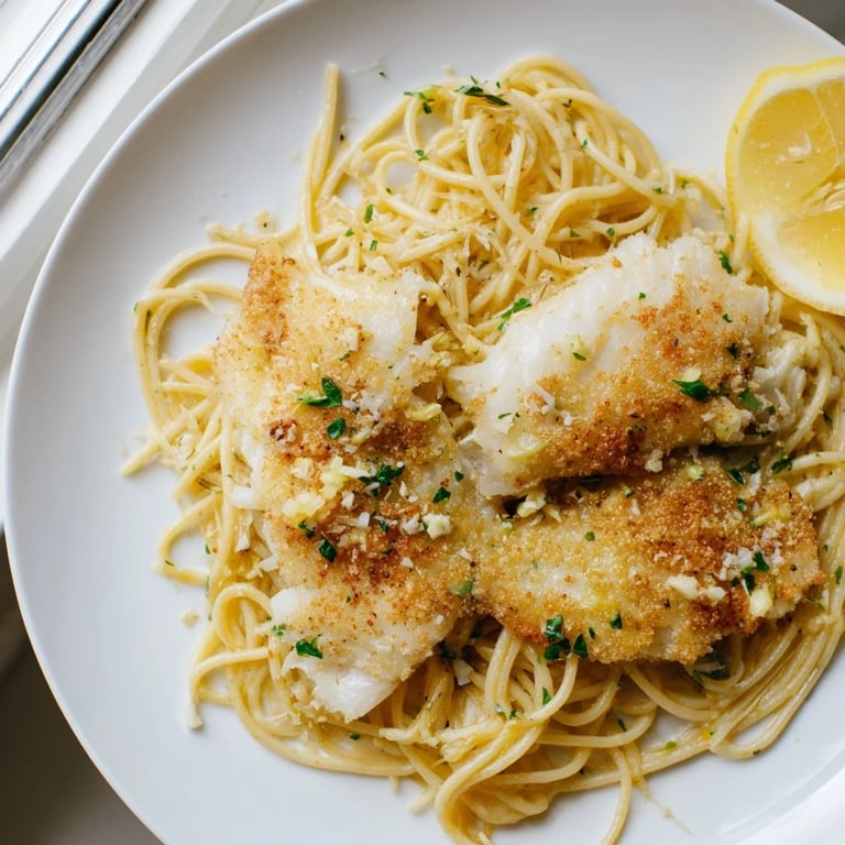 Save The first time I made this pasta was on a rainy Tuesday when I had some leftover cod from the night before and zero inspiration. I ended up pan-frying it until golden and tossing it with whatever was in the fridge, and somehow it became the meal my husband still requests weekly. There is something magical about crispy fish meeting hot pasta with that hit of fresh lemon.