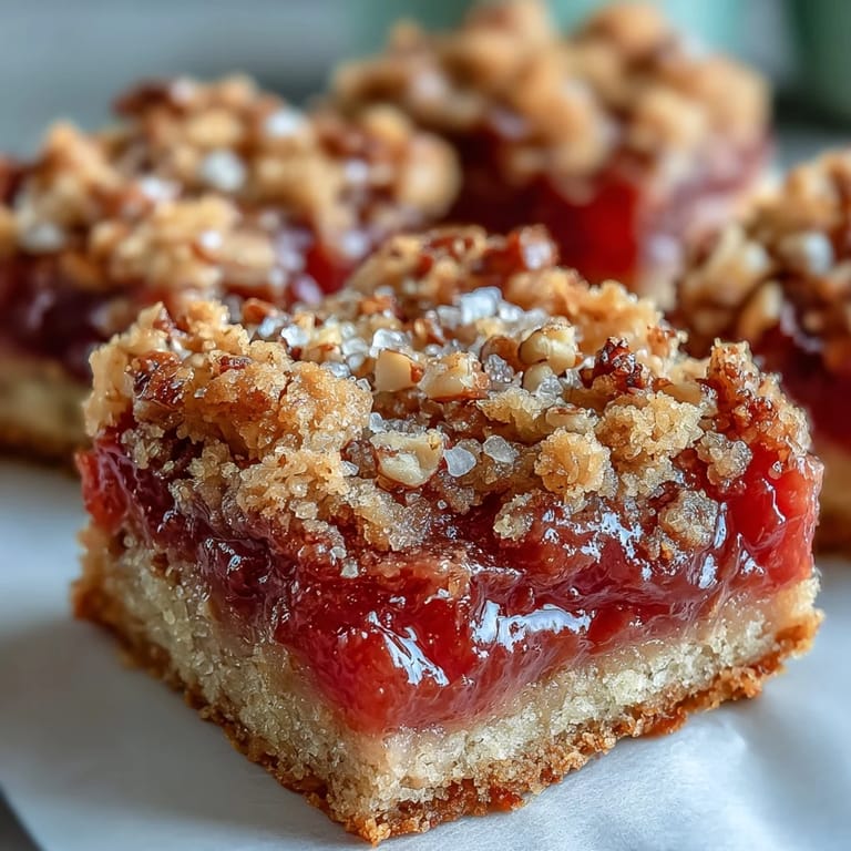 Save These bars remind me that sometimes the most delicious things come from the simplest ideas—a sturdy cookie, a bright jam, a handful of crumbs on top. They're modest in their ambition but somehow always feel special on a plate.