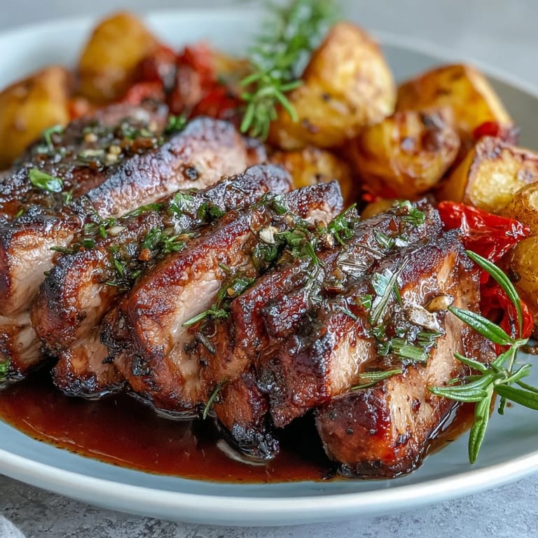 I made this the first time for a dinner party where half the guests were late and I was spiraling. But because the pork had marinated overnight and everything else just needed oven time, I stayed calm. When they finally arrived, I pulled golden potatoes and caramelized peppers from the oven, sliced the pork into perfect pink rounds, and watched everyone go quiet. One friend asked if I'd trained in Spain, and I didn't correct her.