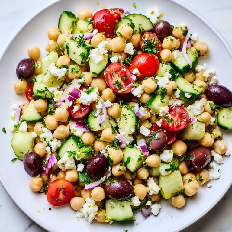 Save I discovered this salad on a sweltering afternoon when my fridge held nothing but canned chickpeas, half a cucumber going soft, and a jar of olives I'd been meaning to use. Rather than order takeout, I grabbed a lemon, threw everything into a bowl, and created something so bright and satisfying that it became my go-to lunch all summer. What started as improvisation turned into the recipe I now make without thinking, the one that tastes like Mediterranean sunshine in a bowl.