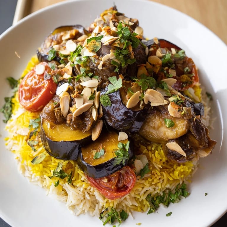 I learned to make this properly at a friend's kitchen in Ramallah, where her mother moved through the steps with the kind of confidence that comes from muscle memory spanning decades. She didn't measure the broth or fret about timing—she trusted her senses, the smell of cinnamon mixing with toasted eggplant, the gentle sound of rice settling. Watching her flip it onto the platter was like witnessing someone tie a perfect knot blindfolded.