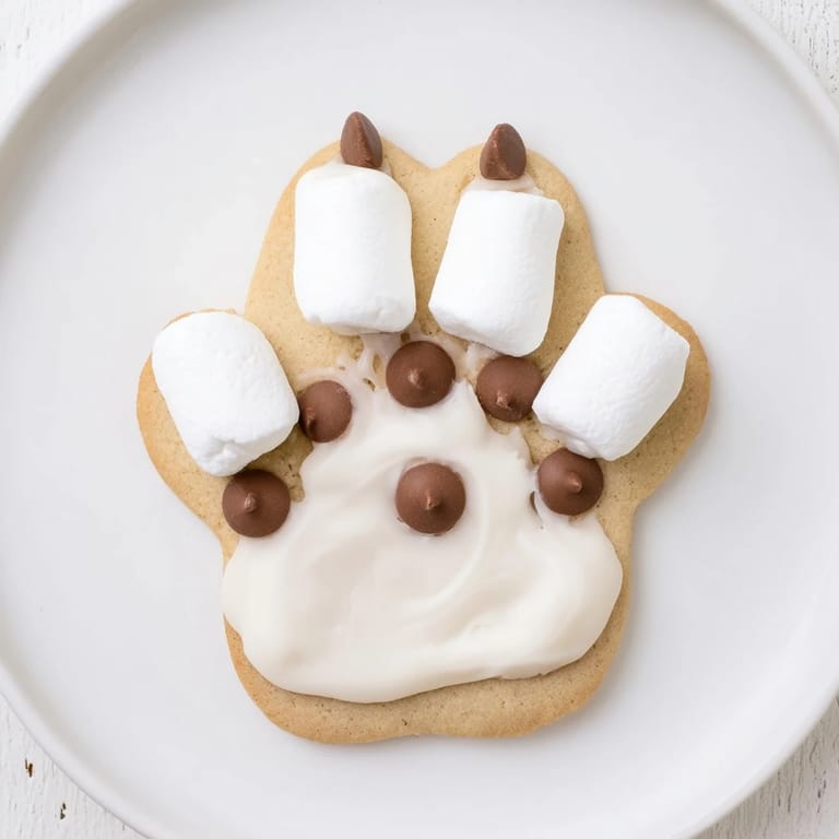 - Spread a thin layer of melted white chocolate on each cookie Press a large marshmallow near the bottom edge of each cookie for the paw pad.