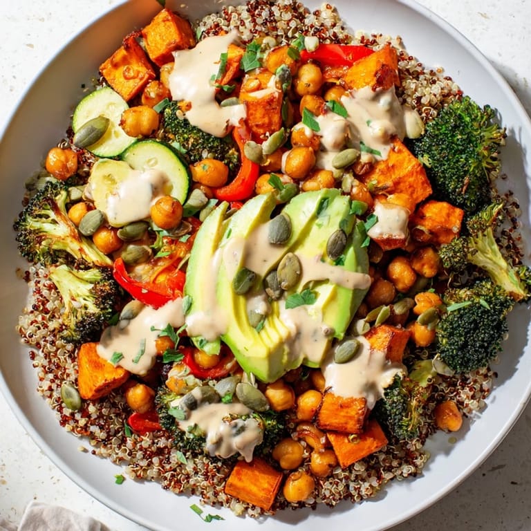 Save My friend who swore she hated quinoa actually asked for seconds of this bowl. The combination of hot roasted vegetables with cool creamy tahini just hits differently than a regular salad.