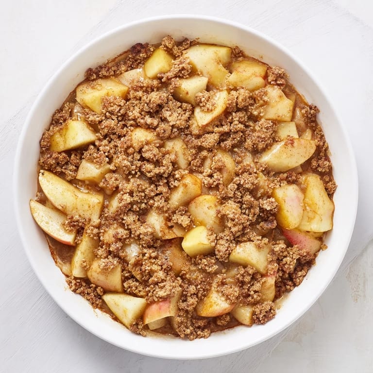 Save A comforting, golden-baked dessert featuring tender apples and a buttery cinnamon-infused crumble topping—perfect for cozy evenings.